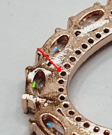 만일, 액세서리 도매 업체와 거래를 하는 도금 공장이 시간이 없다는 핑계로 표면과 구멍을 깨끗하게 하는 공정을 신경 쓰지 않으면 저렇게 불량이 발생하게 되는 것입니다.