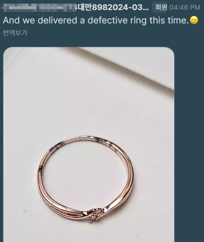 그런데 해외 바이어에게 딱 도착하니 전달된 상품 중에 동일한 디자인인데도 그중에 한두 개만 이런 불량이 발생한 것입니다.