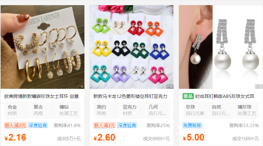 중국은 인구가 많아서 패션 주얼리 판매점이 매우 많습니다. 물론 아주 규모가 큰 프랜차이즈 액세서리 판매점도 많습니다. 그래서 5년 전까지는 한국 디자인이 중국 디자인보다 좋았기에 어느 정도 대량 주문이 있었으나 이제는 중국 자체 디자인 및 제조 능력이 좋아져서 이제는 한국 귀걸이 목걸이를 대량으로 살 이유가 없어졌습니다.
