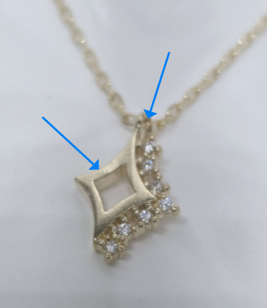 이런 디자인 경우 저렇게 펜던트에 면적이 있는 경우에 도금이 깔끔한지를 봐야 한다는 것입니다.