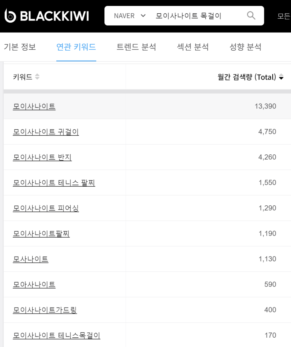 최근 구글이나 네이버에서 "모이사나이트 귀걸이", "모이사나이트 목걸이" 같은 검색어의 검색량이 증가하고 있는 것도 그 증거입니다. 위 그래프를 보면 꾸준히 검색량이 증가하고 있는 걸 알 수 있습니다.