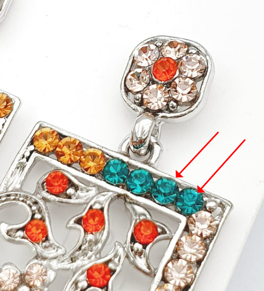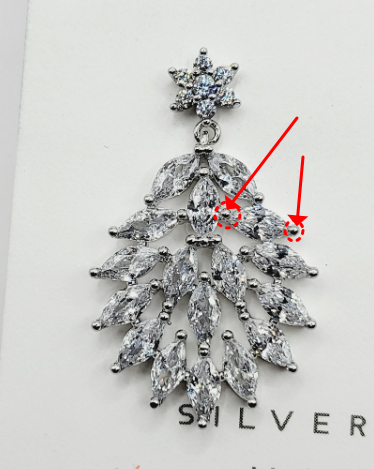 이런 귀걸이는 본드를 이용해서 스톤을 제품에 부착한 경우입니다.