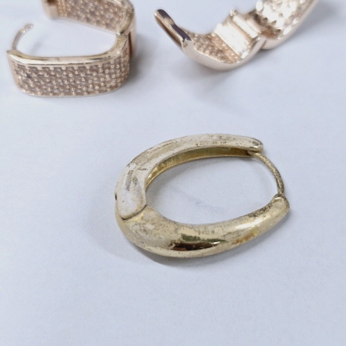 위 제품은 큐빅이 엄청 많이 박힌 제품인데... 귀걸이 1쌍 중에 한쪽만 옆면에 도금 변색이 있었습니다.