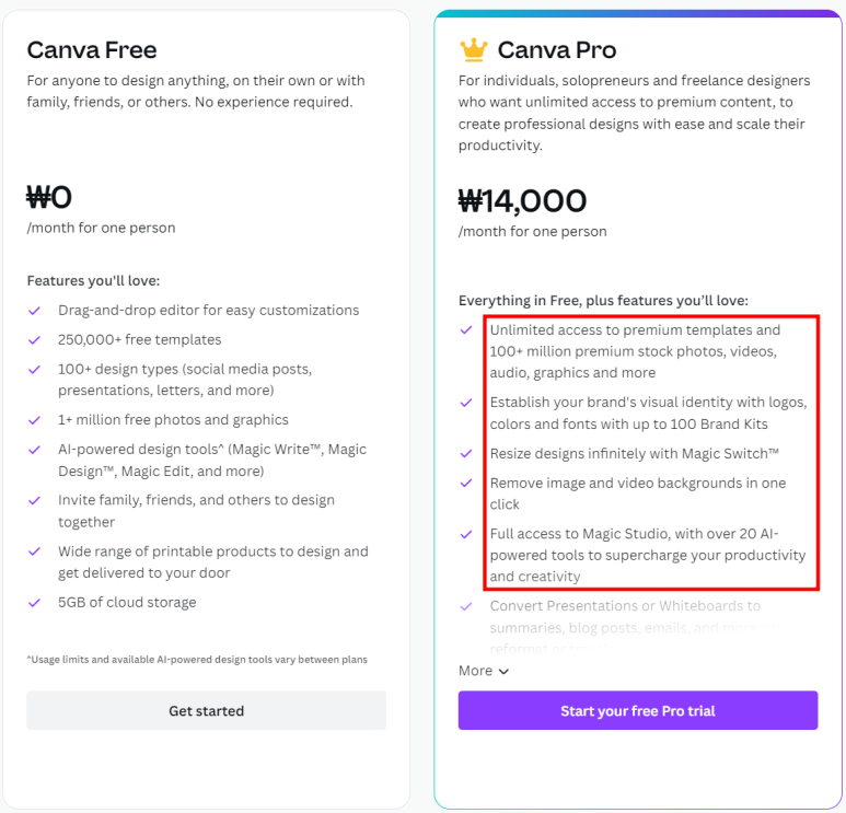 하지만 어마 무시한 템플릿과 무료로 사용할 수 있는 사진들과 비디오 클립... 등등 비슷한 가격이지만 Canva가 월등히 활용도가 더 높습니다.