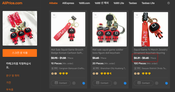 I looked up the squid game goods that were popular, and I also saw products ranging from 0.31$ to 0.65$. It's much easier to find such a clear design.