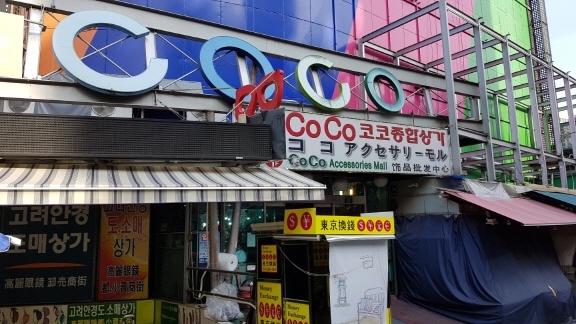 골목길 나와서 우측으로 10m 내려오면 왼쪽에 코코 상가가 보이는 데 다른 상가보다 잡화가 조금 더 많고 일부 헤어 제품도 판매를 하고 있습니다. 2층에 완전 저가 귀걸이 5~700원대 귀걸이를 파는 도매 업체도 있고 스카프나 볼펜.. 등 잡화도 판매하고 있습니다.