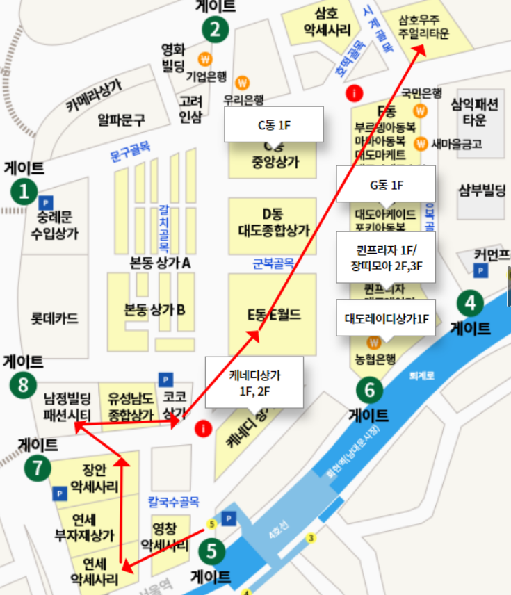 남대문 패션 쥬얼리 시장을 가본 적이 없다면 이런 동선으로 한번 방문해보길 바랍니다.
