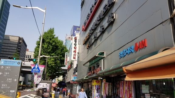 왼쪽으로 돌아서 20m 내려오면 남대문 상가 중 가장 큰 E월드 상가. 이곳이 패션 쥬얼리 메인 상가라고 볼 수 있습니다.